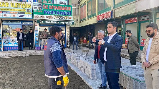 İlçe merkezinde başlattığı çalışmada ilk kilitli parkeyi ilçe esnaflarıyla birlikte kendisi koyan Kaymakam ve Belediye Başkan Vekili Mehmet Güder, ilçeye görevinin ilk günlerinde hizmet kazandırdı.