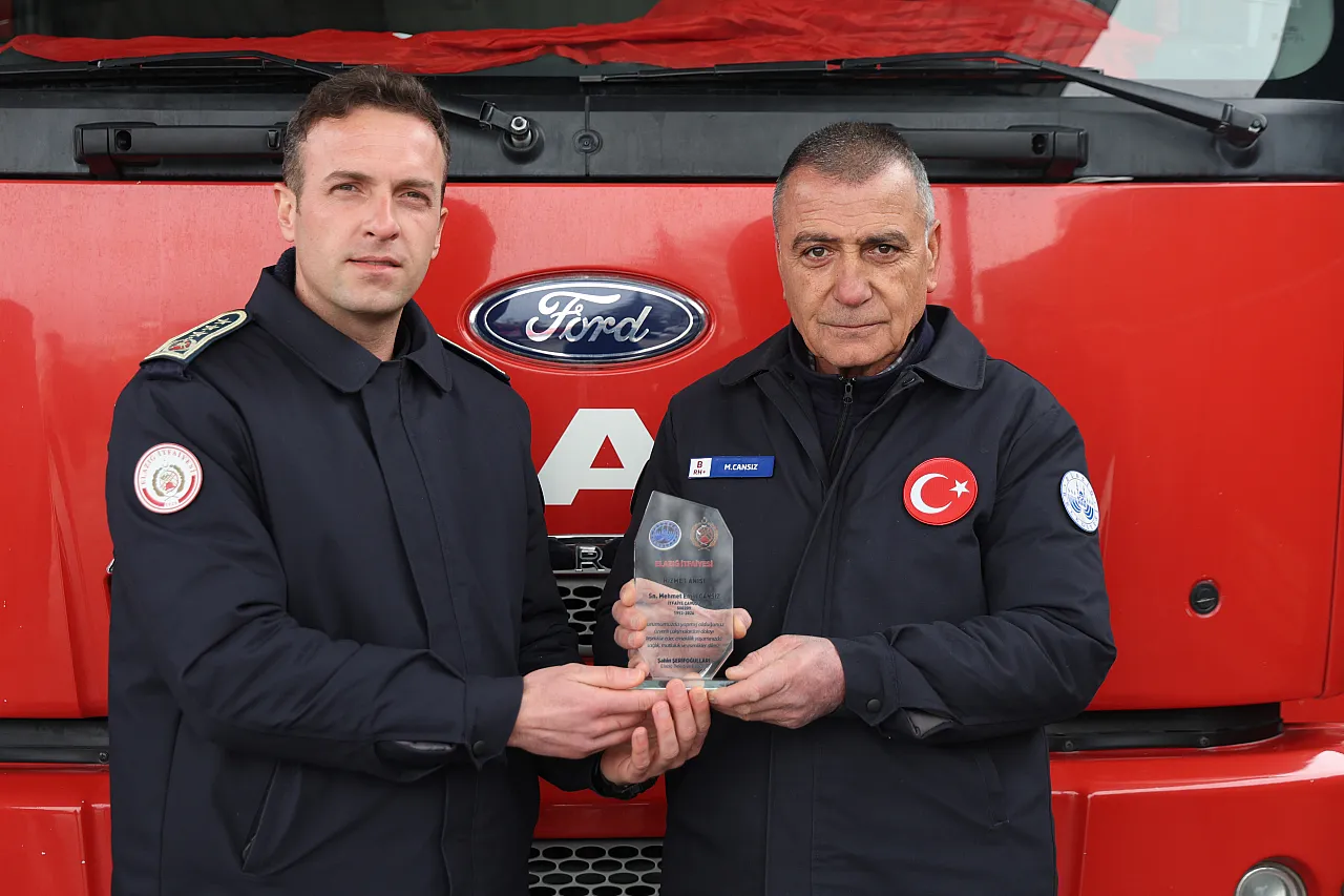 Yıllarca omuz omuza yangın söndürdüğü, kazazedeleri kurtardığı arkadaşlarına telsiz kanalıyla teşekkür eden Cansız, personelden helallik isteyerek aktif görevini sonlandırdı. İstasyon bahçesinde toplanan personel ise kıdemli ağabeylerini alkışlarla ve siren sesleriyle uğurladı.