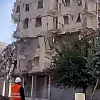 Ağır hasarlı bina tek dokunuşta yerle bir oldu