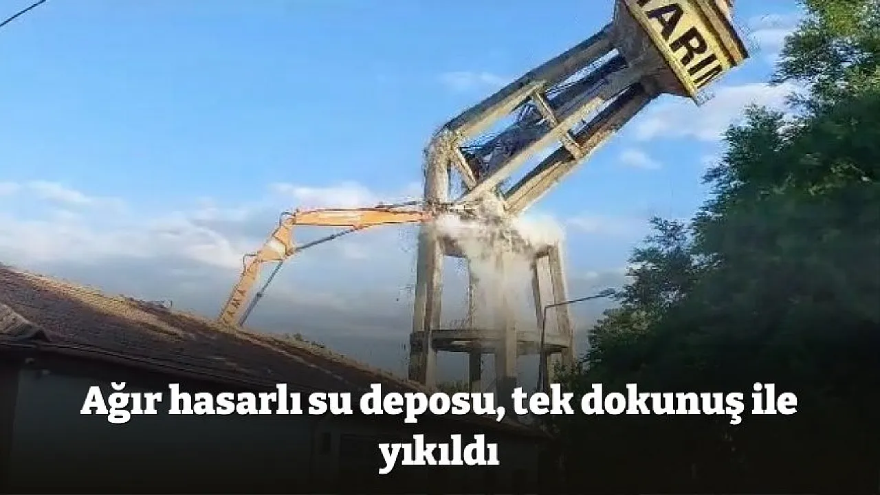Ağır hasarlı su deposu, tek dokunuş ile yıkıldı