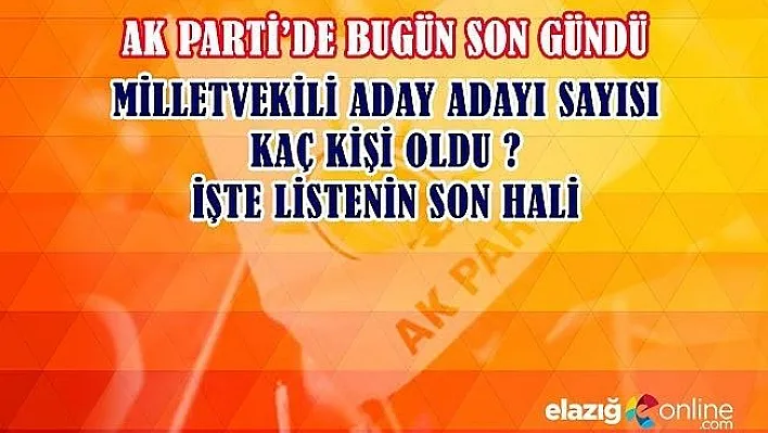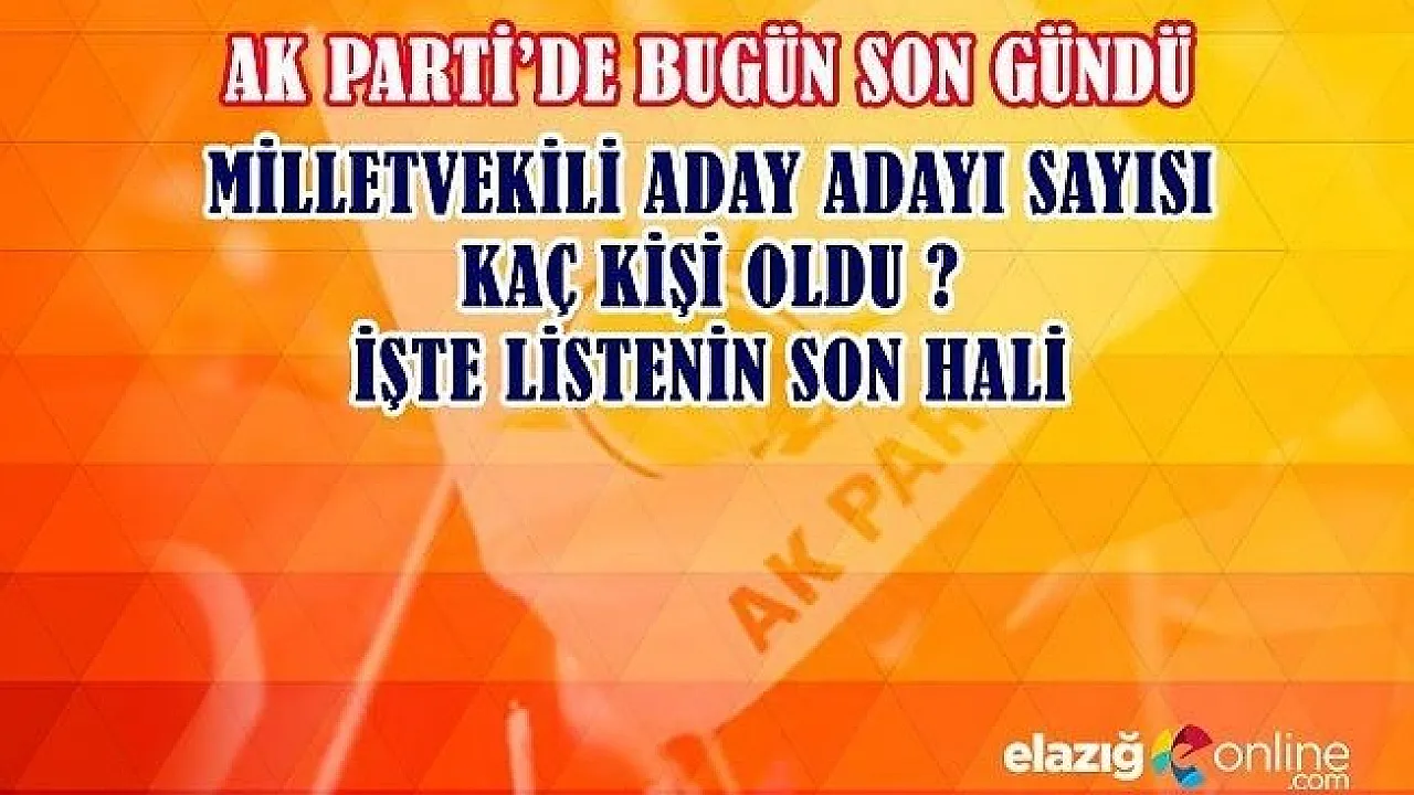 Peki, Elazığ'da AK Parti Milletvekilliği adaylığı için kimler müracaat etti? Müracat eden kişi sayısı kaç oldu? AK Parti Genel Merkezi ve AK Parti Elazığ İl Teşkilatına Elazığ Milletvekilliği adaylığı için toplamda 75 kişi başvuru yaptı.