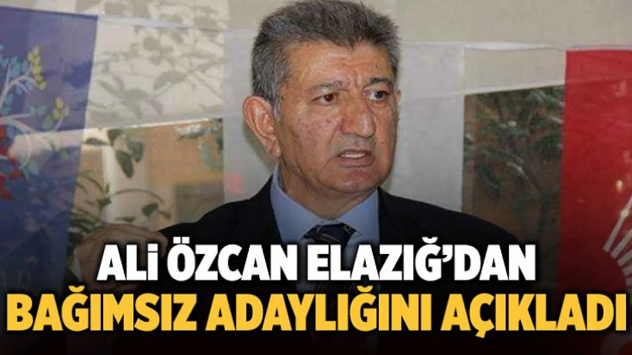 Eski CHP İstanbul Milletvekili Ali Özcan, CHP Genel Merkezi’nin Elazığ’da ön seçim yapmaması dolayısıyla bağımsız aday olduğunu açıkladı.