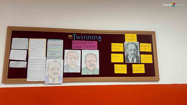 Diyarbakır'da Yahya Kemal Beyatlı İlkokulu öğrencileri, 7 ülkenin katıldığı “Good people who change the world” adlı proje ile bilim insanlarının hayatını öğreniyor.