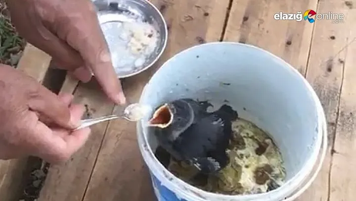 Elazığ'da yaşayan 76 yaşındaki Akif Aydın, yaralı halde bulduğu yavru kargayı bebek gibi besleyerek sağlığına kavuşması için ona gözü gibi bakıyor.