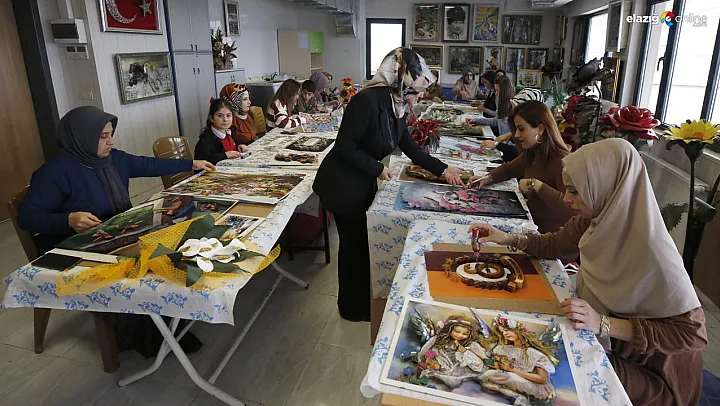 Elazığ'da anneler ve çocukları açılan kursta dekoratif ürünler yapıyor.