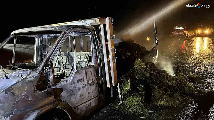 Arguvan'da yonca yüklü kamyonet alev alev yandı