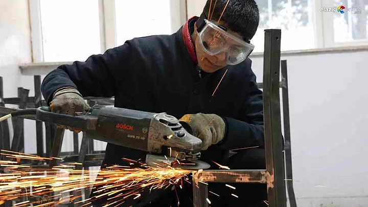 Elazığ Mesleki ve Teknik Anadolu Lisesi, öğrencilerine verdiği kaliteli mesleki eğitimin yanında üretimi ve yüksek ciroları ile fabrikaları aratmıyor. İleri teknoloji ile birçok alanda eğitim verilen lisede, mobilya ve iç tasarım ile metal teknolojisi alanında üretim yapıyor. Teorik eğitimlerini bu atölyelerde pratiğe dönüştüren öğrenciler, Elazığ başta olmak üzere çevre illere de hizmet veriyor. Başta okullar ve devlet kurumları olmak üzere birçok işletmeye malzeme üreten lise, 2023 yılında 5 milyon ciroya ulaştı. Öğrenciler bir yandan eğitim alıp el becerilerini geliştirirken bir yandan da döner sermayeden aldıkları ücretle kendi ve aile ekonomilerine katkı sağlıyor.
