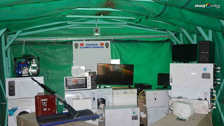 Deprem bölgesi Malatya'nın Doğanşehir ilçesinde, depremzedelere ait çok sayıda iş yeri ile ikamette hırsızlık yaptıkları belirlenen 3 zanlı, polis ekipleri tarafından yakalanarak gözaltına alındı. Zanlılara ait biri kırsal bölgede olmak üzere üç ayrı adreste yapılan aramalarda; toplam değerinin yaklaşık 400 bin TL olduğu değerlendirilen 8 ev tipi kombi, 1 sanayi tipi kombi, 2 çamaşır makinesi, 1 bulaşık makinesi, 1 otomatik av tüfeği, 1 jeneratör, 3 PC kasası, 1 kamera, 1 TV, 4 elektrikli şofben, 2 cep telefonu, 1 çelik kasa, 1 fırın, 2 monitör ve 2 yazıcı ele geçirildi.