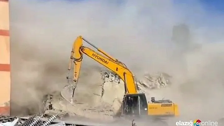 Elazığ'ın Baskil ilçesinde depremin ağır hasar verdiği okul kontrollü olarak yıkıldı. Okulun bir kısmının çökme anı kameraya saniye saniye yansıdı.