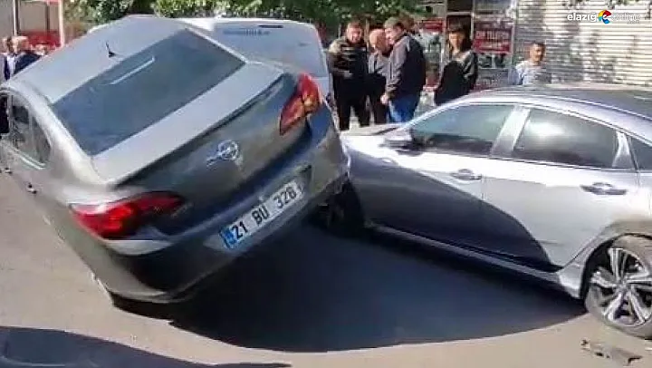 Diyarbakır'ın Bağlar ilçesinde sürücüsünün direksiyon hakimiyetini kaybettiği otomobil, park halinde bulunan iki aracın üzerine çıktı. Ortaya çıkan görüntü görenleri şaşkına çevirdi.