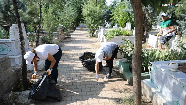 Çalışmalar kapsamında ekipler, mezarlık alanındaki yabani otları biçti, ağaçların kuruyan dallarını budadı, yol temizliği yaptı, çöpleri topladı.