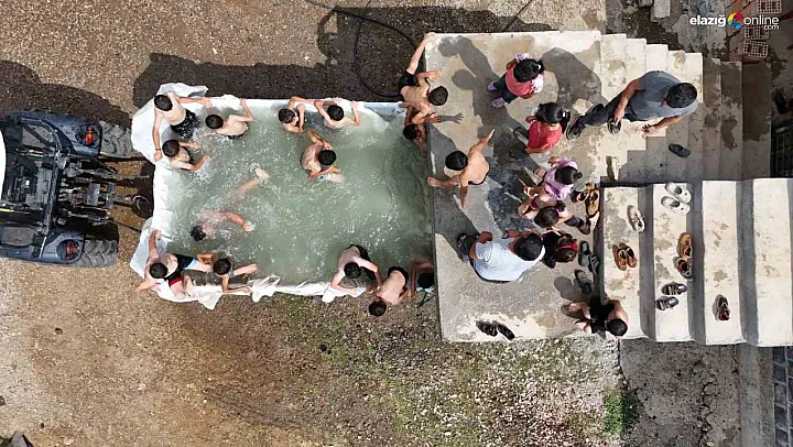 Çınar ilçesine bağlı Düğrük Mahallesi'nde yaşayan vatandaşlar, çocuklar için sıra dışı bir çözüm geliştirdi. Mahalle sakinleri, traktör römorkunun içine çadır çekip su doldurarak çocuklara serinleme alanı oluşturdu. Çocuklar, adeta olimpik havuzu andıran bu düzenekte doyasıya eğlendi. O anlar ise drone ile görüntülendi.