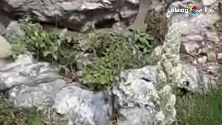 Elazığ'da kayalıklar arasında görülen 2 metrelik yılan korkuttu
