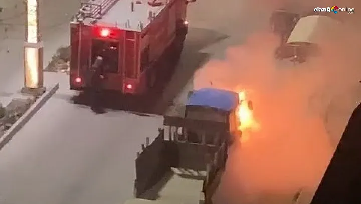 Elazığ'da park halindeki traktörden alevler yükseldi