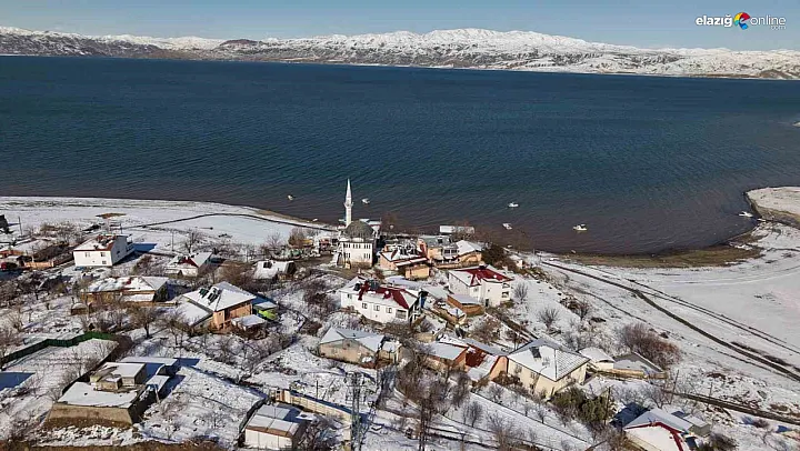 Keban Baraj Gölü havzasında yer alan Aşağı İçme köyü, yükselen su seviyesi ve kar örtüsüyle birlikte eşsiz bir görünüme kavuştu. Murat Nehri kıyısındaki yerleşim yeri, dron görüntülerinde adeta bir yarımadayı andırıyor.