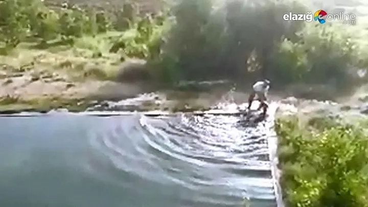 Elazığ'da havuza düşen ineği vatandaş kurtardı.