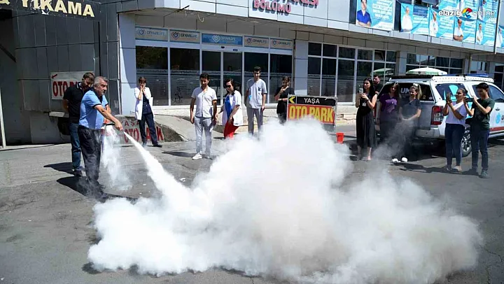 Ekiplerin, hastane binasında gerçekleştirdiği tatbikatta oluşabilecek herhangi bir acil durumda yangın söndürme, yaralıyı sedye yardımı ile tahliye etme ve mahsur kalanları kurtarma faaliyetleri canlandırdı. Birçok kişi itfaiyenin tatbikatını ve yangın söndürme çalışmalarını merakla izledi.
