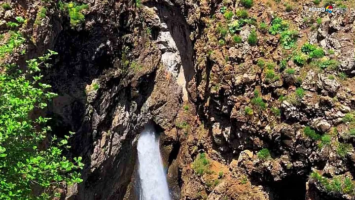 Bingöl'ün Solhan ilçesinde kayayı oyarak süzülen doğa harikası şelale, görenleri kendine hayran bırakıyor.