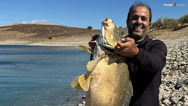 Elazığ'ın Keban Baraj Gölü'nde amatör balıkçı Engin Al, oltasına takılan 21 kiloluk dev sazanı uzun uğraşlar sonucu kıyıya çekerek görenleri şaşkına çevirdi.