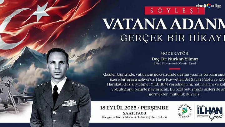 18 Eylül Perşembe günü saat 19.00'da Kongre ve Kültür Merkezi Fahri Kayahan Salonu'nda gerçekleştirilecek söyleşide, Kıbrıs Barış Harektı gazisi ve Hava Kuvvetleri Jet Savaş Pilotu Mehmet Yıldırım, yaşadıklarını ve unutulmaz hatıralarını katılımcılarla paylaşacak. Söyleşinin moderatörlüğünü İnönü Üniversitesi Öğretim Üyesi Doç. Dr. Nurkan Yılmaz üstlenecek.