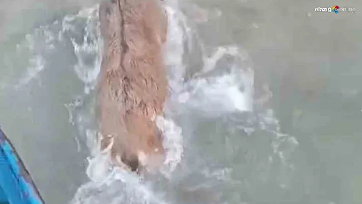 Edinilen bilgiye göre, dağ keçisi kurtlardan kaçarken dengesini kaybederek Keban Baraj Gölü'ne düştü. Suya düşen hayvan çırpınarak hayatta kalmaya çalıştı.