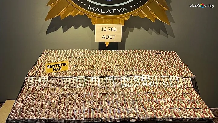 Malatya'da polis ekipleri tarafından düzenlenen operasyonda 16 bin 786 adet sentetik ecza hap ele geçirildi, 2 şüpheli gözaltına alındı.