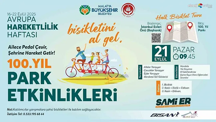 Bu yıl 'Bisikletini Al Gel' sloganıyla yapılacak etkinlikler, 21 Eylül Pazar günü saat 09.45'te İstanbul Evleri önü (Başharık) noktasında başlayacak. Düzenlenecek Halk Bisiklet Turu'na katılanlar aileleriyle birlikte pedal çevirerek 100. Yıl Parkı'na ulaşacak.