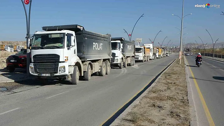 Malatya'da hafriyat kamyonu sürücülerinden ceza protestosu