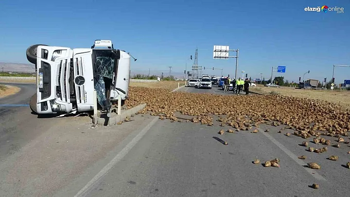 Malatya'da sürücünün kontrolünden çıkan pancar yüklü tır devrildi. Tonlarca pancarın yola savrulduğu kazada 1 kişi yaralandı.