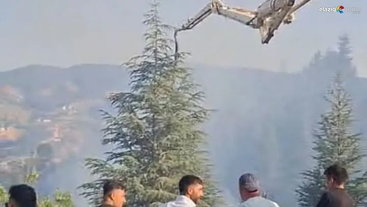 Malatya'da çıkan orman yangınına müdahale eden ekiplere, beton pompası da destek verdi. Araç sürücüsünün yangın söndürme çalışmalarına katılması çevrede takdir topladı.