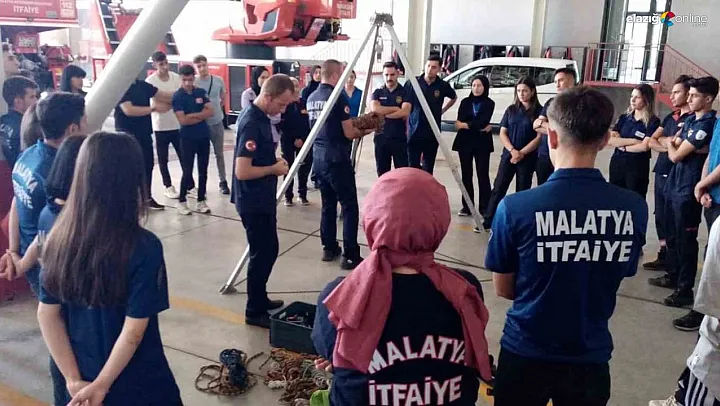 Malatya Büyükşehir Belediyesi İtfaiye Daire Başkanlığı tarafından üniversitelerin ilgili bölümlerinde okuyan stajyer öğrencilerine uygulamalı olarak eğitim veriliyor.