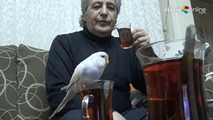 Elazığ'da, Mehmet Özçelik'e ait 'Maviş' isimli muhabbet kuşunun bağımlılığı görenleri hayretler içinde bırakıyor. Çay tiryakisi olan Maviş, her gün sahibine eşlik ederek birlikte çay içiyor.