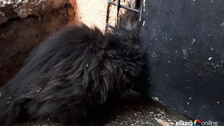 Elazığ'da mazgala kafası sıkışan kedi itfaiye ekiplerinin çalışmasıyla kurtarıldı.
