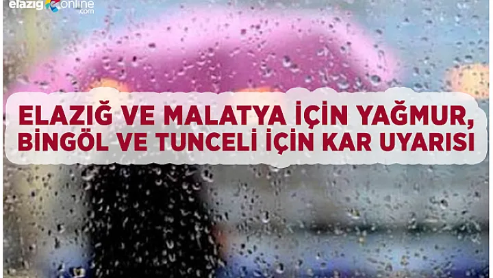 Meteoroloji, Elazığ, Malatya, Adıyaman için yağmur, Tunceli ve Bingöl için ise kar yağışı uyarısında bulundu.