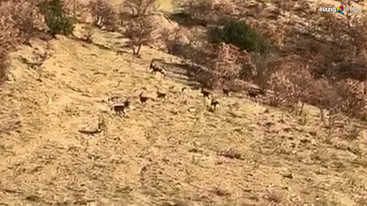 Koruma altındaki dağ keçileri, avlanmaları yasak olmasına rağmen doğal yaşam alanlarında serbestçe dolaşmaya devam ediyor. Görüntülerde keçilerin yiyecek arayışları ve sürü halinde hareket etmeleri dikkat çekiyor. Bir süre sonra sürü, gözden kayboldu.