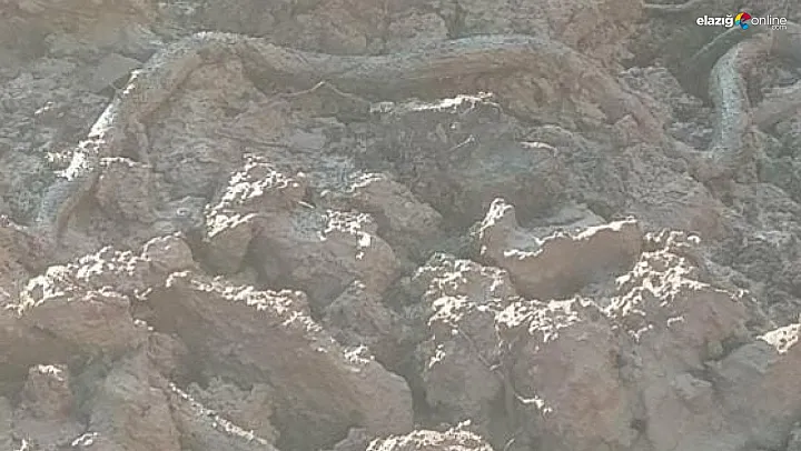Elazığ'da su kuyusu için kazı yapılırken toprağın dibinden çıkan yaklaşık 3 metrelik yılan paniğe neden oldu.