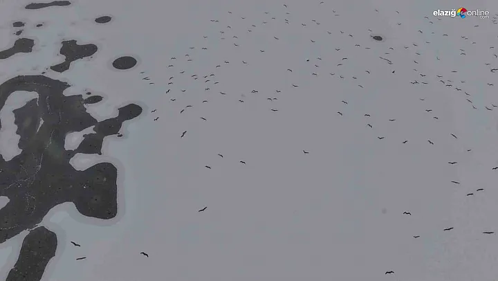 Elazığ'da dondurucu soğuklar yaşamı zorlaştırırken, Cip Baraj Gölü'nün yüzeyi tamamen buzla kaplandı. Hava sıcaklığının sıfırın altında 11 dereceye kadar düşmesiyle kristalleşen göl, ardından yağan karla birlikte beyaz bir çöle dönüştü.