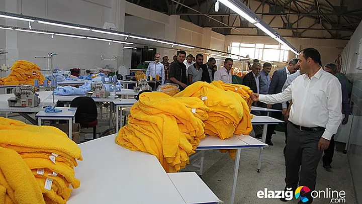 Şahindere Köyü Aliağa Mezrasına geçip yol çalışmasını yerinde gören Kaldırım, ilçe merkezinde hizmete giren tekstil fabrikasını da gezmesinden sonra 'Kesimhane ve Ütü Paketleme' binasın da da inceleme yaptı.