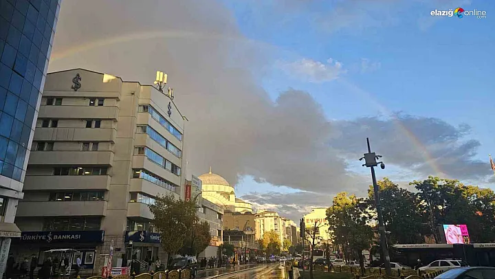 Meteoroloji 13. Bölge Müdürlüğü'nün uyarısının ardından Elazığ'da akşam saatlerinde etkili olan sağanak yağış, kent genelinde kısa süreli aksamalara neden oldu. Yağmurun ardından havanın açılmasıyla birlikte gökyüzünde beliren gökkuşağı, şehrin dört bir yanında renkli görüntüler oluşturdu.