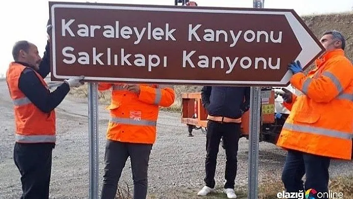 Elazığ'da 9 milyon yıl öncesine ait olduğu belirlenen Dünya'nın en yeni keşfi Saklıkapı ve Karaleylek kanyonlarına ulaşımı kolaylaştırmak için yön tabelaları asılmaya başlandı.
