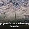 Anne ayı, yavrularını 2 erkek ayıya karşı korudu