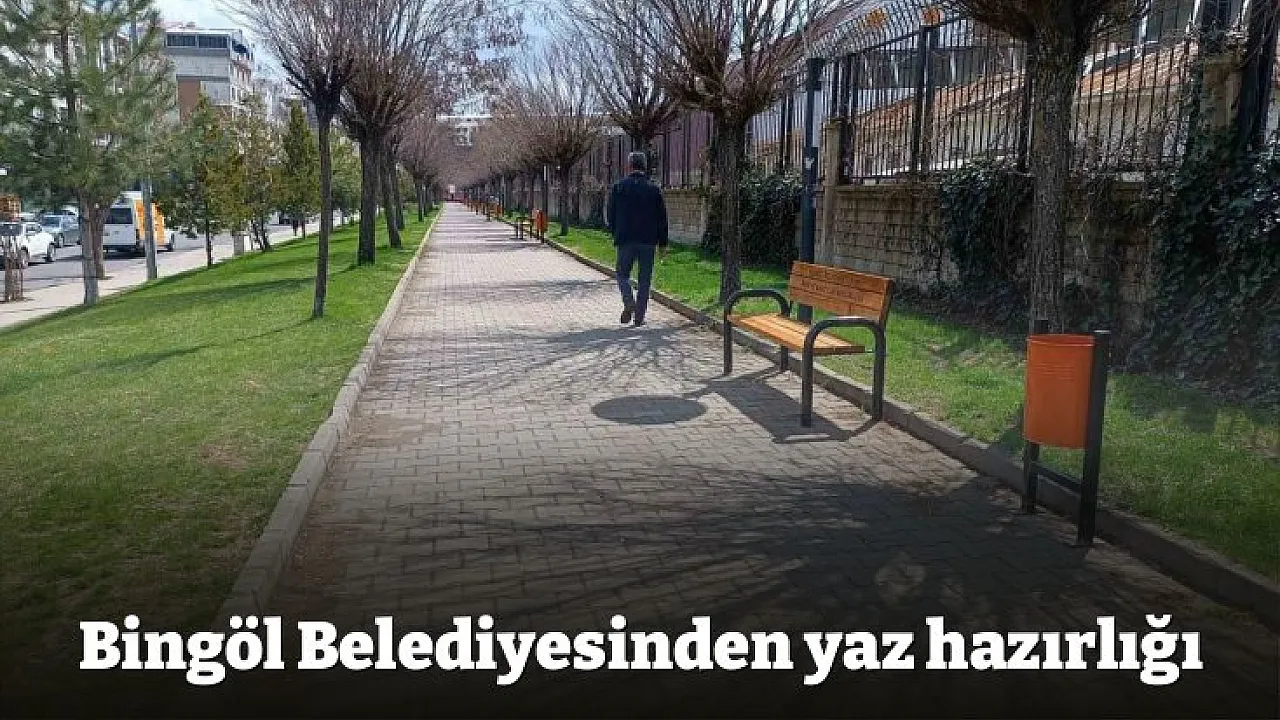 Bingöl’de hava sıcaklıklarının artmasıyla birlikte, Bingöl Belediyesi de yaz ayları hazırlıklarına hız vermeye başladı. Kent merkezindeki park, bahçe ve oturma alanlarında bakım onarım çalışması yapan belediye ekipleri, birçok noktada yenileme yaptı. Merkeze bağlı Palamut Caddesi’ndeki dinlenme, yürüyüş alanında çalışma yapan belediyeden yapılan açıklamada, ’’Palamut Caddesi dinlenme ve yürüyüş alanımızdaki oturak ve çöp kovalarımızı yeniledik, yeşil alanımızın bakımını gerçekleştirdik’’ ifadelerine yer verildi.