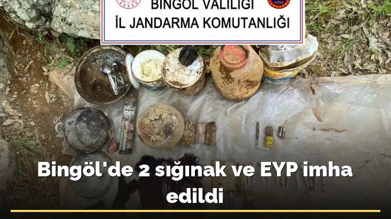 Bingöl'de jandarma tarafından icra edilen operasyonda bölücü terör örgütü PKK'ya ait 2 adet sığınak ve tüp içinde hazırlanmış EYP ele geçirilerek imha edildi.