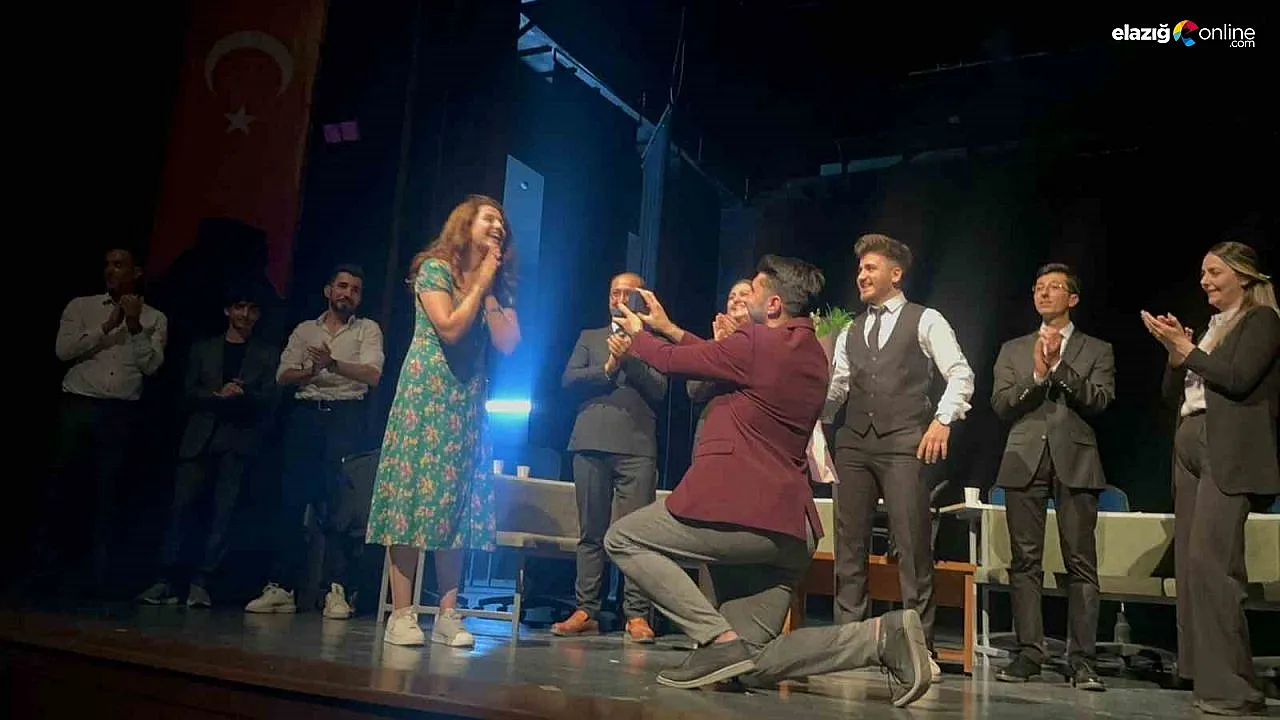 Elazığ'da bir tiyatrocu, sahneye konuk oyuncu olarak davet edilen kız arkadaşına sürpriz yaparak evlenme teklif etti. Şaşkınlığını gizlemeyen kız, seyircilerin alkışları eşliğinde teklifi kabul etti.