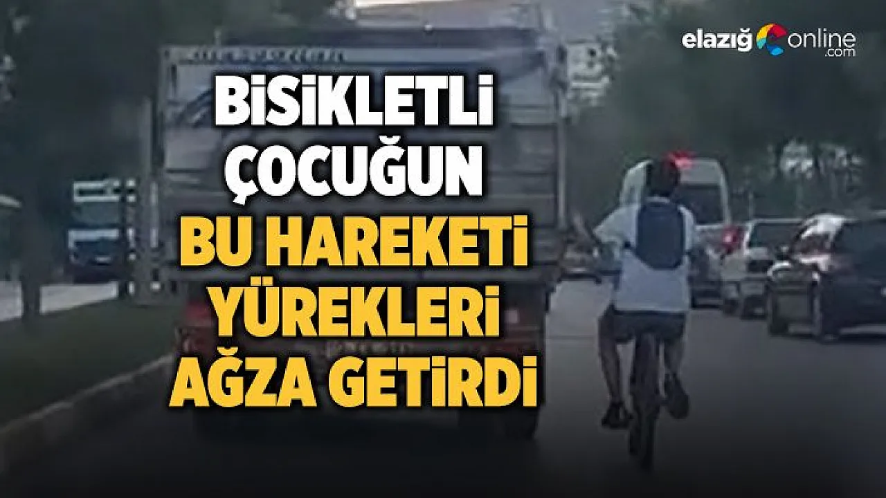 Elazığ'da kamyonun arkasına tutunarak ilerleyen bisikletli çocuğun tehlikeli yolculuğu kameralara yansıdı.