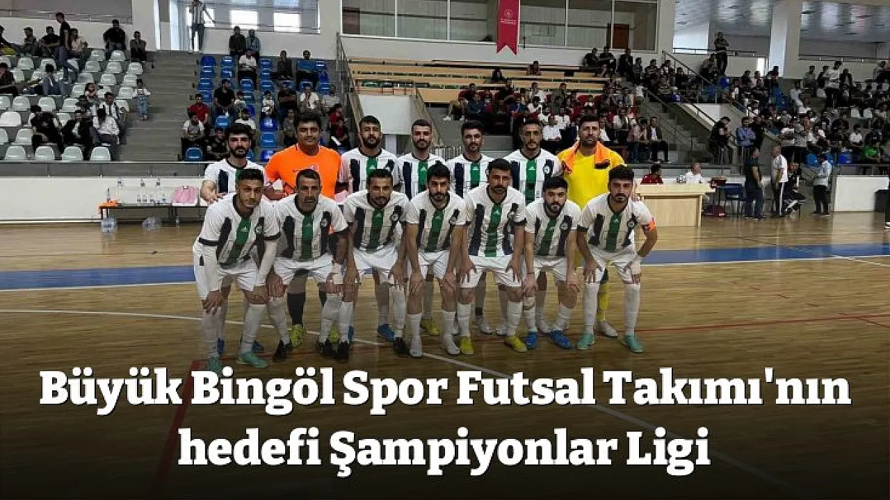 TFF Futsal Süper Ligi'ni ikinci sırada tamamlayan Büyük Bingöl Spor Futsal Takımı'nın hedefi, play-off'larda galip gelerek Türkiye şampiyonu olmak ve oradan da UEFA Futsal Şampiyonlar Ligi'ne çıkmak.