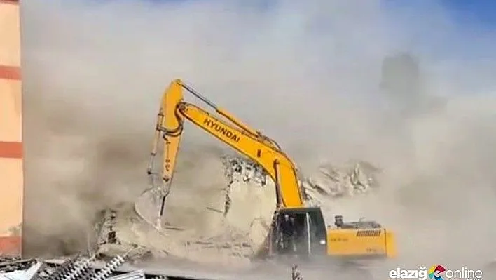 Elazığ'ın Baskil ilçesinde depremin ağır hasar verdiği okul kontrollü olarak yıkıldı. Okulun bir kısmının çökme anı kameraya saniye saniye yansıdı.