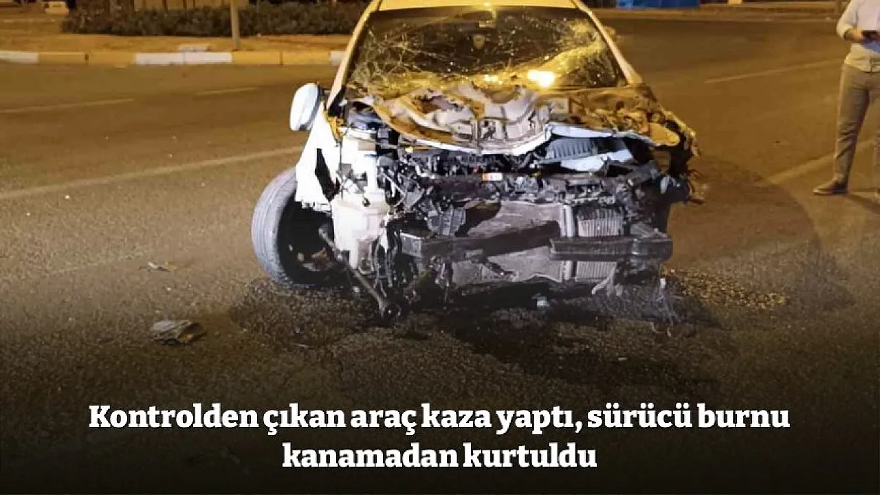 Diyarbakır'ın Yenişehir ilçesinde kontrolden çıkan otomobil kaza yaptı. Sürücü kazadan burnu kanamadan kurtuldu.
