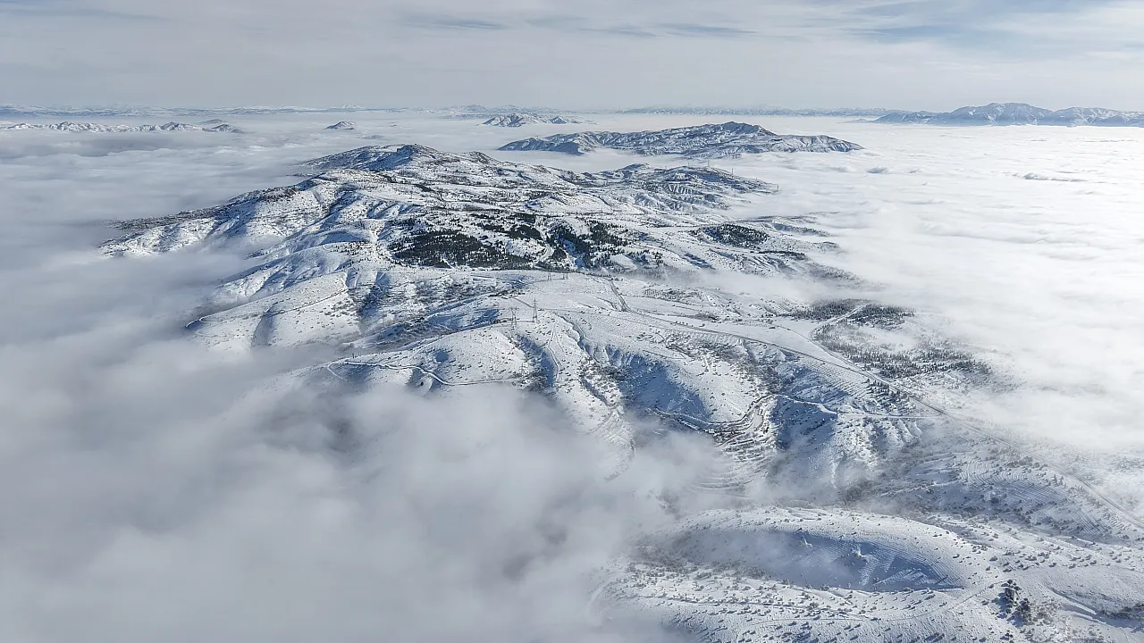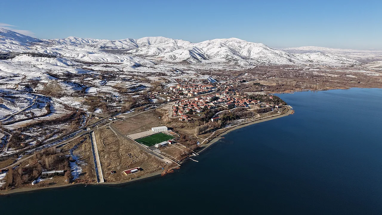 Şehrin incisi Hazar Gölü’nde ise manzara biraz daha gizemliydi. Kar yağışıyla birlikte göl yüzeyine inen yoğun sis, kıyı şeridini ve karlı tepeleri bir tül gibi örttü. Dron görüntülerine yansıyan bölgede, görüş mesafesi yer yer düşse de mavinin ve beyazın birleşimi ortaya büyüleyici bir doğa olayı çıkardı.