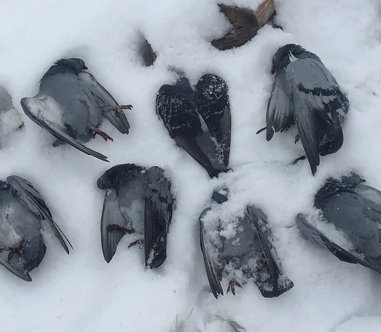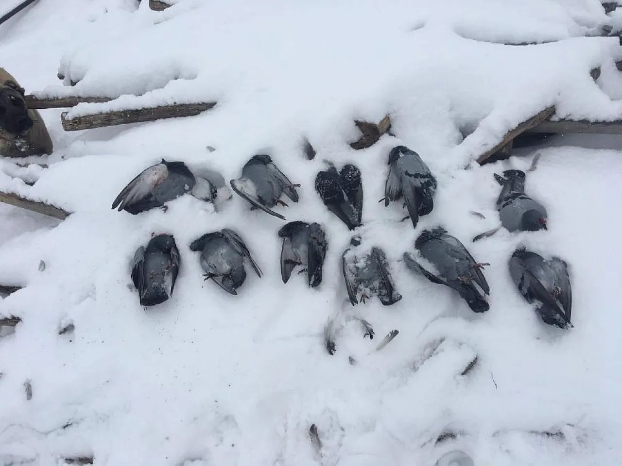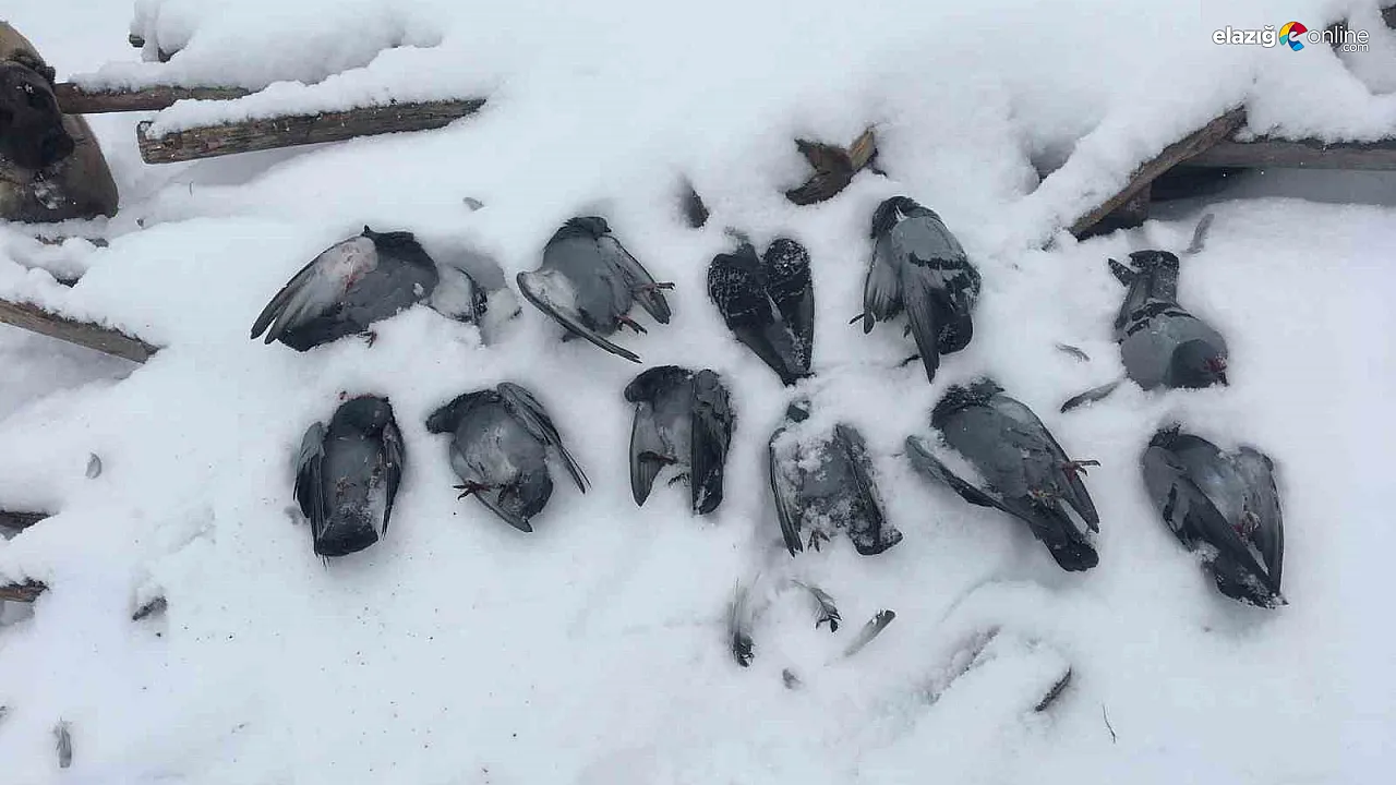 Elazığ'da kar yağışının ardından etkisini gösteren dondurucu soğuklar, kırsalda hazin görüntülere sahne oldu. Hava sıcaklığının sıfırın altında 13 dereceye kadar gerilediği Merkeze bağlı Salkaya köyünde, onlarca güvercin aşırı soğuğa dayanamayarak hayatını kaybetti.